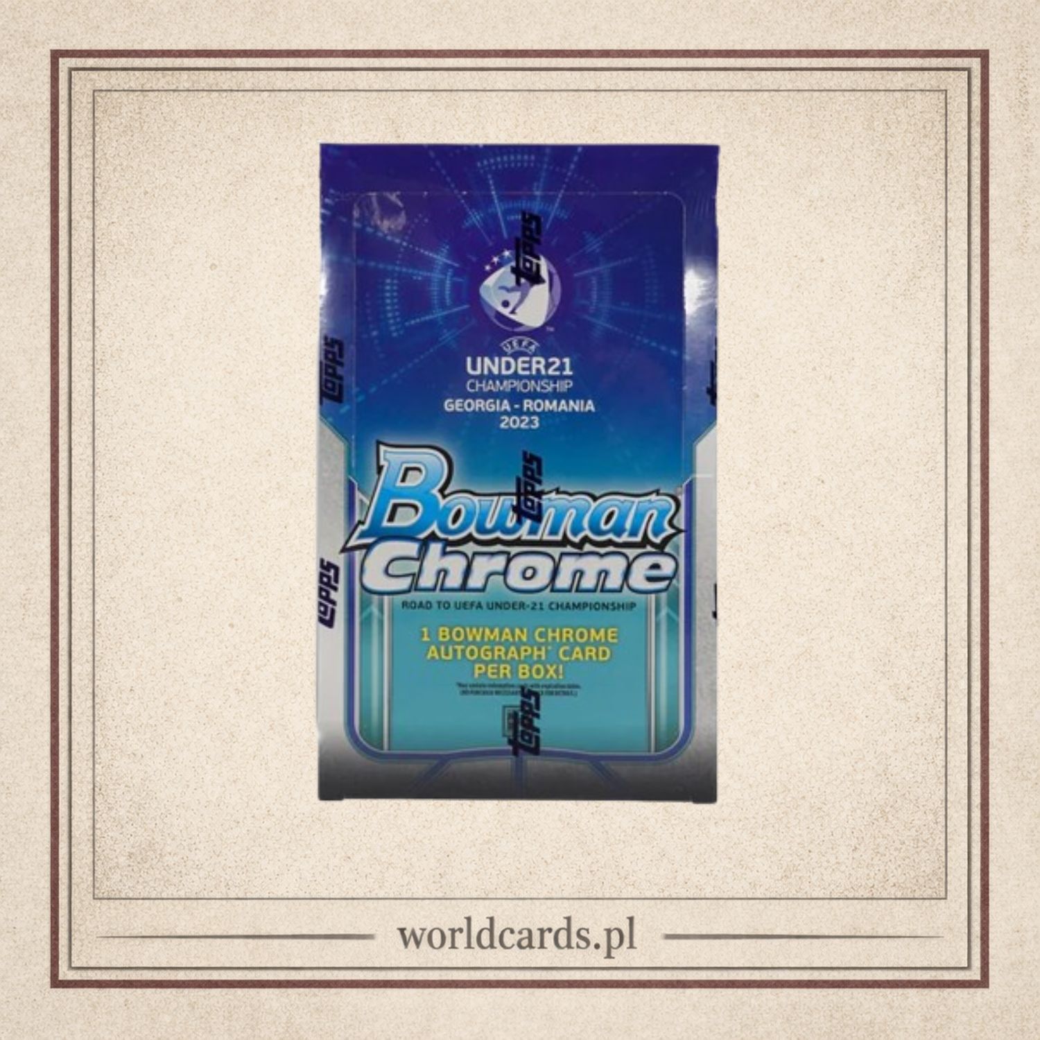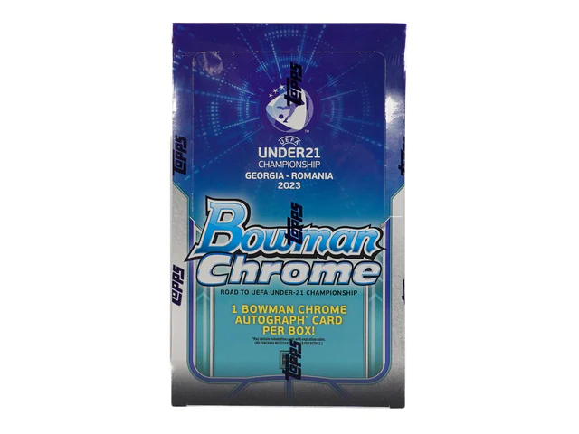 2022 Bowman Chrome Road to UEFA Under-21 European Championship Soccer Hobby Box to pierwsza w historii seria kart poświęcona wyłącznie turniejowi UEFA Under-21. Zestaw koncentruje się na największych młodych talentach europejskiej piłki, oferując karty typu 1st Bowman, efektowne inserty oraz autografy zawodników do lat 21.