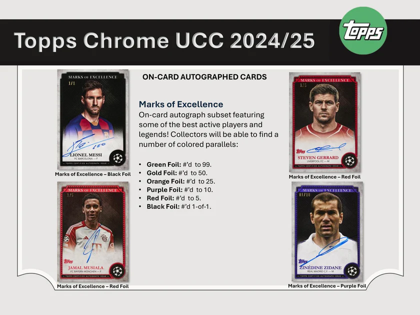 Autografy & rzadkość – Chrome Autograph, Dual, Triple, a nawet nowość: Chrome Quad Autograph Cards. W edycji znajdą się też autografy Wonderkids, autografy legend w “Marks of Excellence” oraz specjalne Quad Auto Pundits z autografami znanych komentatorów.